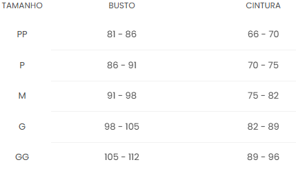 (Conforme a tabela oficial Doce Trama)