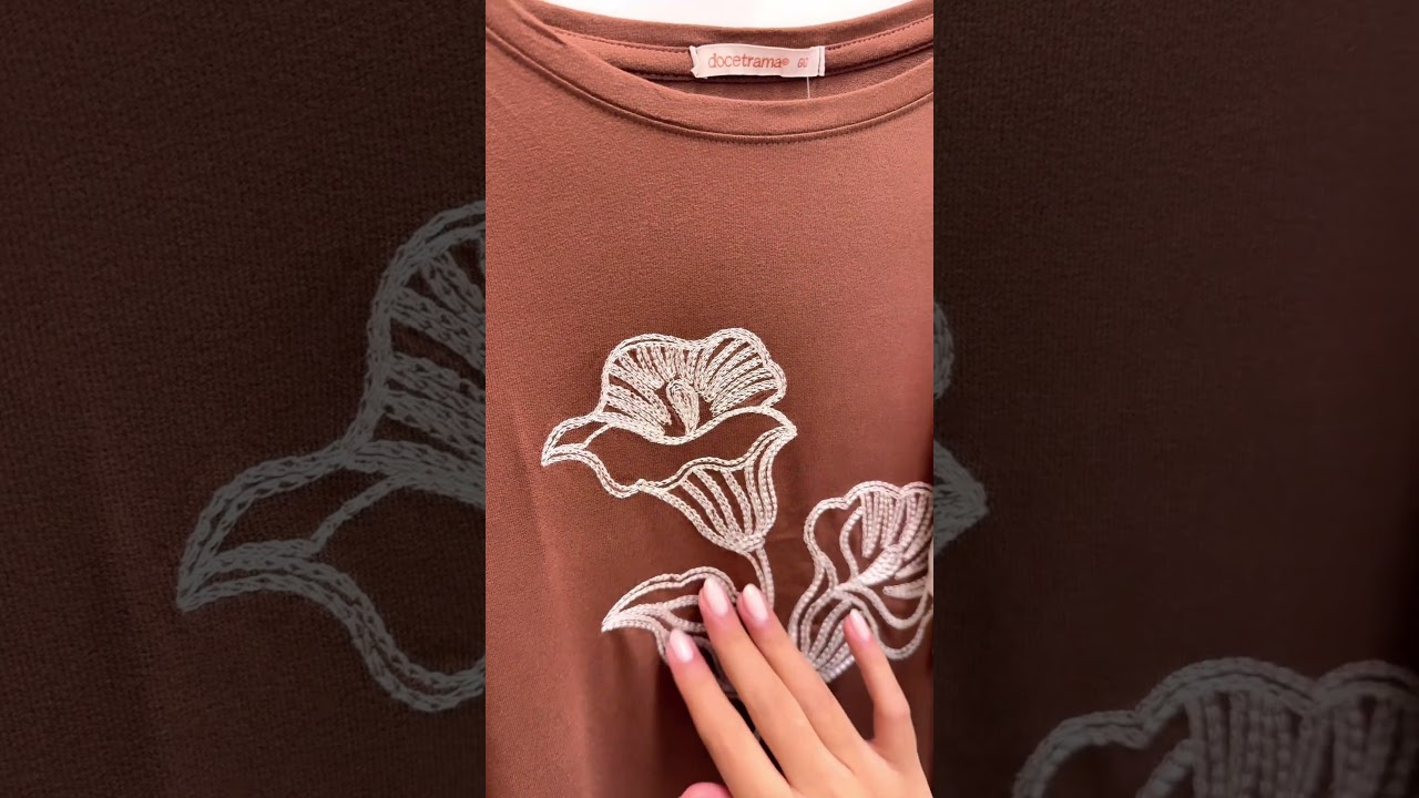Lavagem: Lave preferencialmente à mão ou no modo delicado para não danificar os fios do bordado.